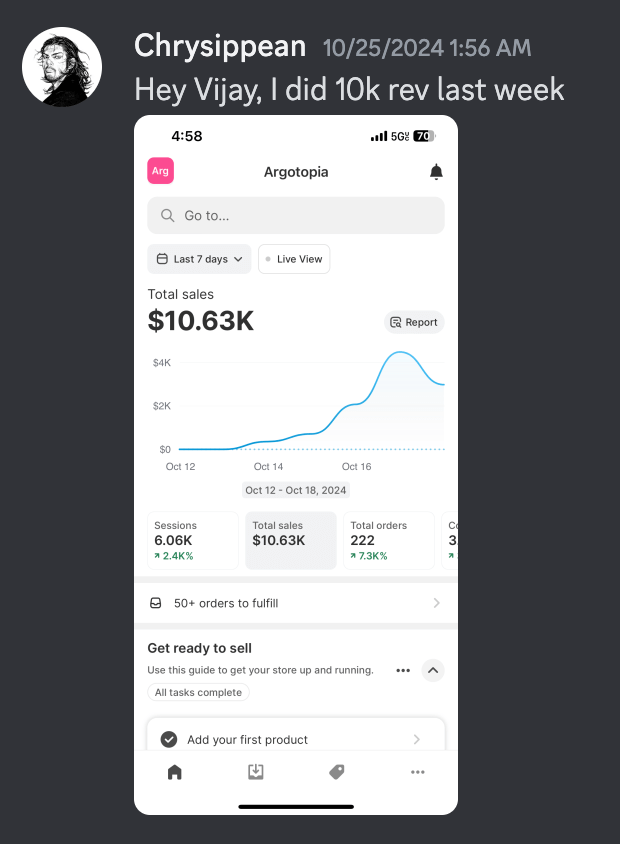 Frankie Fihn's hydrogen water generator bottle store went from $0 to over $50,000/mo within 90 days and is working on $100K/mo.*
